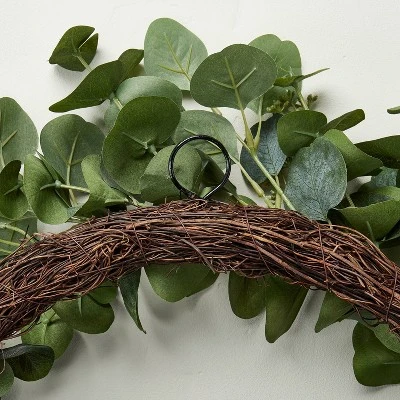 Add a stunning look to your indoor space with this Faux Seeded Eucalyptus Wreath from Hearth & Hand™ with Magnolia. Featuring faux eucalyptus leaves with white seeds that have realistic green coloring and detailing, this round wreath has a simple and clean design that pairs seamlessly with a variety of different decor styles. This faux wreath also has a lightweight design that makes it easy to hang and display for a crisp touch of greenery.