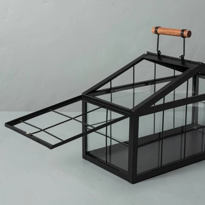 Take your plant display to the next level with this stylish Rectangular Metal & Glass Terrarium from Hearth & Hand™ with Magnolia. This glass and metal terrarium features a modern container for a charming look that easily blends with a variety of decor styles and color palettes. Plus, the wooden handle makes for easy carrying from one place to another. Place it as part of your dining table arrangement or on the console table for an eye-catching addition you’ll love.