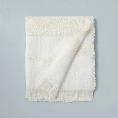 Bring textured style and cozy comfort to your home with this Dimensional Stripe Dobby Throw Blanket from Hearth & Hand™ with Magnolia. This decorative dobby throw blanket is adorned with an allover dimensional stripe pattern in a solid hue and is finished with fringe edges for a charming look. Made from lightweight fabric, this throw blanket is great for year-round use, whether you wrap it around yourself or drape it across the top of your chair.