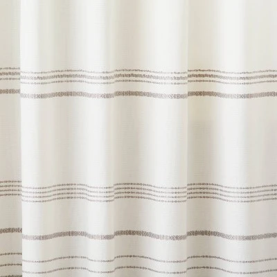 Adorn your windows in sleek style with this Engineered Hem Stripes Curtain Panel from Hearth & Hand™ with Magnolia. This lined curtain panel features a light-filtering fabric that blocks out most of the sunlight and provides privacy at the same time, and it’s designed with a thin striped pattern on the engineered hem for a touch of style. Featuring a rod pocket for effortless hanging, it has hidden loops at the back that slip over the curtain rod to create soft pleats that accentuate the look and feel.