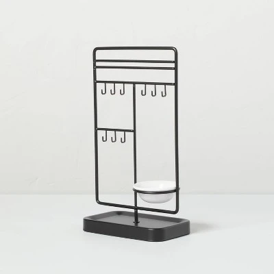 You’ll find all your jewelry conveniently in one spot when it’s organized with this Jewelry Organization Stand from Hearth & Hand™ with Magnolia. Set atop a rectangular base that works as a tray, this jewelry organizer features a top with multiple hooks that offer plenty of space for your earrings, necklaces and more. It’s made with metal in a matte black finish for easy integration with most of your decor styles. Place this matte black jewelry organizer stand on top of the dresser and hang an arched mirror on the wall to create a complete setup for getting ready for the day.
