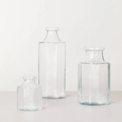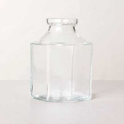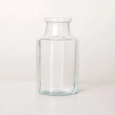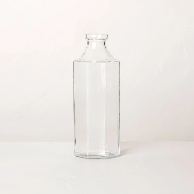 Showcase fresh or faux botanicals in traditional style with this Octagonal Clear Glass Bottle Vase from Hearth & Hand™ with Magnolia. This glass vase features an octagonal shape with a narrow mouth for a true bottle-like look. Boasting a watertight construction, this clear vase looks beautiful on a tabletop or any other spot in your entryway, windowsill or other area. Just pair it with coordinating vases of varying sizes for a decorative look.
