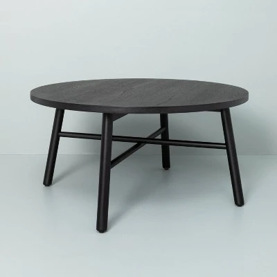 Stage a decorative display or serve up trays of treats when you find yourself entertaining with this Shaker Coffee Table from Hearth & Hand™ with Magnolia. This round wood coffee table strikes a clean-lined designthat works perfectly with a wide range of decor styles. Complete with crisscrossing bar accents that connect the legs, this round coffee table is the perfect pick for serving up appetizers to guests, holding remotes or fanning out issues of your favorite magazines.