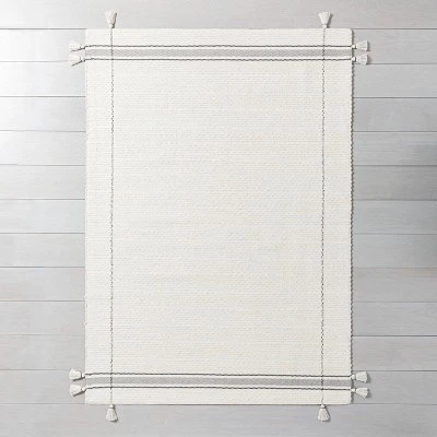 Add some depth and dimension to your home with the Simple Border Stripe with Corner Tassel Rug from Hearth & Hand™ with Magnolia. Made from a soft wool blend, this hand-woven rug has a richly textured look, and it’s finished with border stripes in gray and corner tassels for chic appeal. Easy to blend into any decor scheme, this flat-pile rectangular rug will fit under most doors, making it a versatile option for anywhere in the home — from the entryway to the living room and more.