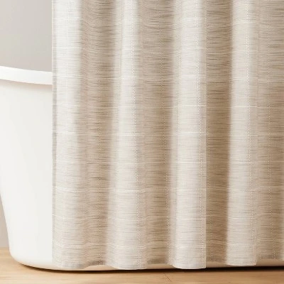 Elegant and stylish, this Stitched Grid Lines Woven Shower Curtain from Hearth & Hand™ with Magnolia brings a refreshing update to your bathroom decor. Made from a soft dobby fabric, this decorative shower curtain is designed with a buttonhole top for easy installation. Showcasing a heather brown hue, it features stitched grid lines in white for a touch of contrast and textural flair, making it a great pick for contemporary bathrooms.
