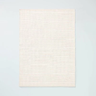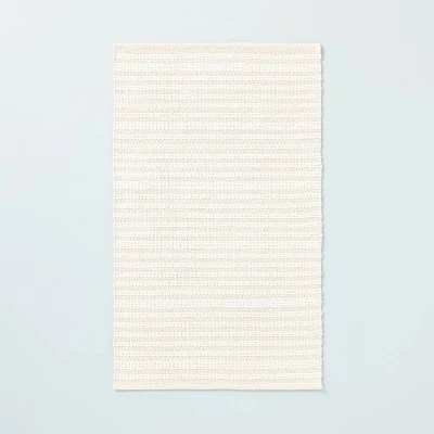 The Textured Stripe Indoor/Outdoor Woven Area Rug from Hearth & Hand™ with Magnolia makes a stylish addition to any space in your home. This handmade accent rug features a textured striped pattern that is sure to elevate your space while easily matching with a variety of settings. Designed with a flat pile height that is easy to clean and maintain, this weather-resistant woven rug is suitable for placement in even high-traffic areas like your entryway or patio.