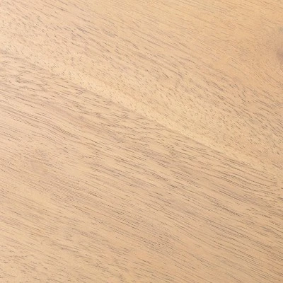 - In a light wood tone with a gray and white pad for easy integration with your decor