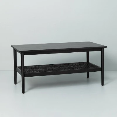 Bring clean, crisp and contemporary style to your entertainment space with this Wood & Cane Coffee Table from Hearth & Hand™ with Magnolia. Founded atop 4-point legs for better stability, the coffee table showcases a neutral solid finish that blends effortlessly with any decor style and color palette. A spacious tabletop provides the perfect platform to serve mouthwatering snacks, drinks and more, while a lower woven shelf tucks extra items out of the way. Bring a whole new dimension to your entertainment space with this coffee table.