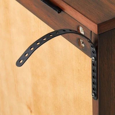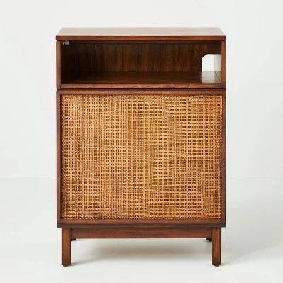 Bring a retro look and feel to your home by displaying and storing your turntable and vinyl albums with this Wood and Cane Transitional Record Player Media Cabinet from Hearth & Hand™ with Magnolia. Crafted from wood with brown hues, this record player media cabinet features a top and front that open to reveal shelves, and a cabinet door with a cane design for classic style. Simply lift the top when you want to play your favorite music with a cup of tea in hand.